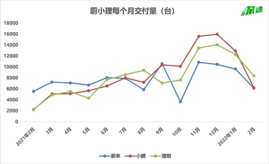 “蔚小理”的2月销量,比往常来的更晚一些,也要更少一些。