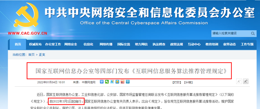 而就从3月1日起,国家网信办等四部门联合发布的《互联网信息服务算法推荐管理规定》(以下简称《规定》)开始正式施行。