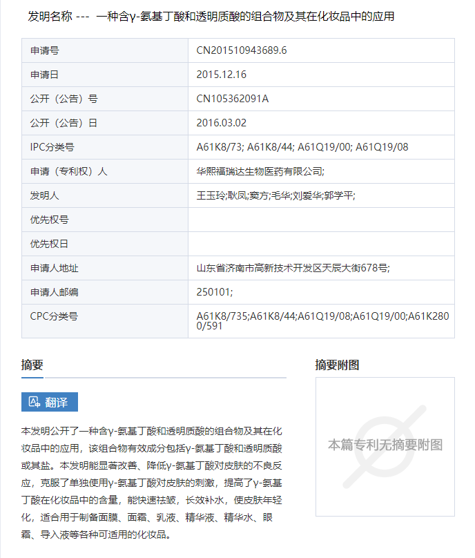 但据上海市金山区市场监督管理局调查,上海伽盛并未在产品详情页面上标注专利号。同时该产品所使用的专利号201510943689.6,是名称为一种含γ-氨基丁酸和透明质酸的组合物及其在化妆品中的应用,其专利成分未含有肉毒素或类肉毒素,判定其发布“专利类肉毒素成分”的行为为“假冒专利”。