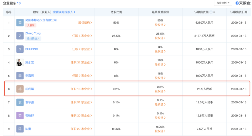 天眼查显示,截至目前,杨利娟持有海底捞0.2%的股份,按照后者最新的1007亿港元(约合人民币813.25亿元)的市值计算,杨丽娟持有海底捞股权的对应市值约为1.63亿元。