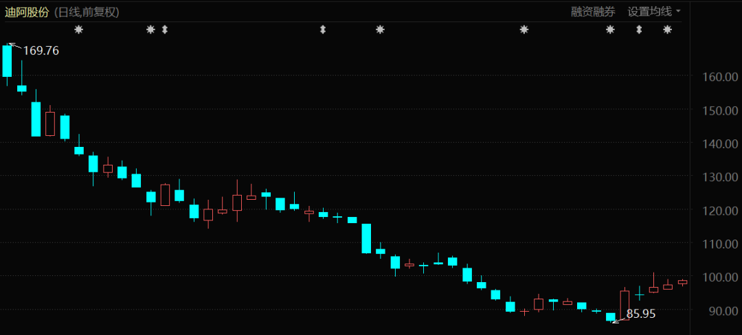 股价腰斩过后的迪阿开始有些反转势头。与最初超百倍的估值阶段相比,市场的认可度似乎在逐渐回升。