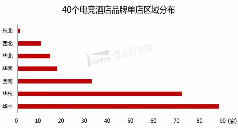 2、酒店区域分布这232家电竞酒店所在区域主要分布于华中和华东地区,坐拥87家和71家单体酒店,占据市场规模的37.5%和30.6%。西南地区有32家单体酒店、华南地区有17家单体酒店、华北地区有14家单体酒店、西北地区有10家单体酒店、东北地区有1家单体酒店,分别占据市场规模的13.79%、7.33%、6.03%、4.31%和0.43%。