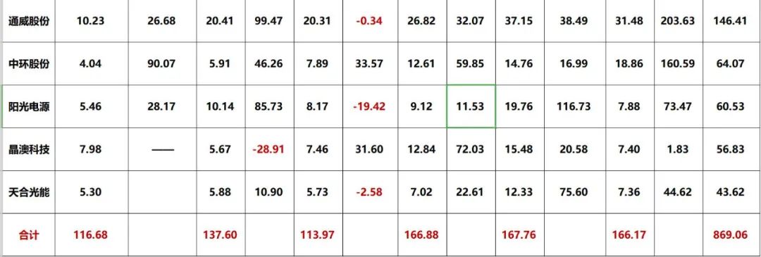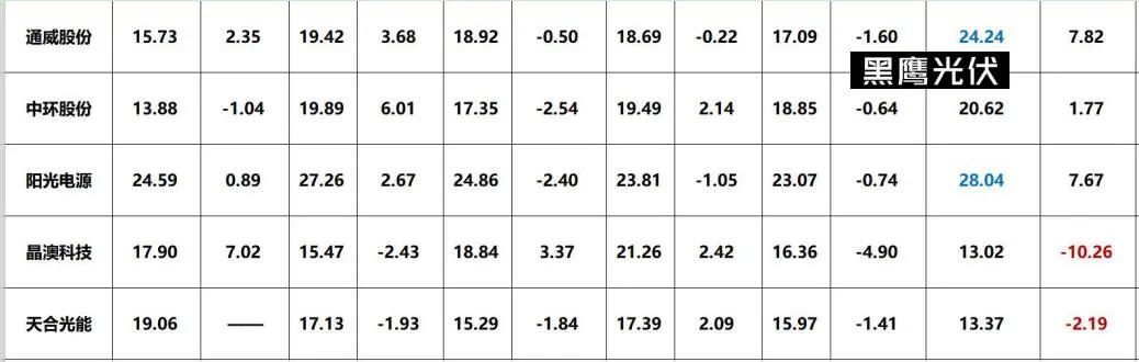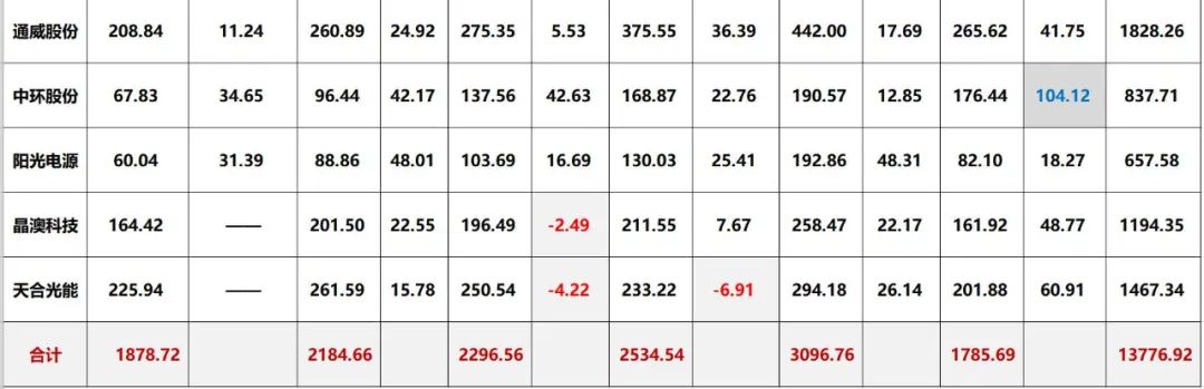 本期内容,黑鹰光伏根据过往梳理分析的数据库,多维度对比晶澳科技、天合光能、晶科能源、隆基股份、通威股份、中环股份等光伏巨头的市场与经营业绩。以下呈现五大部分内容: