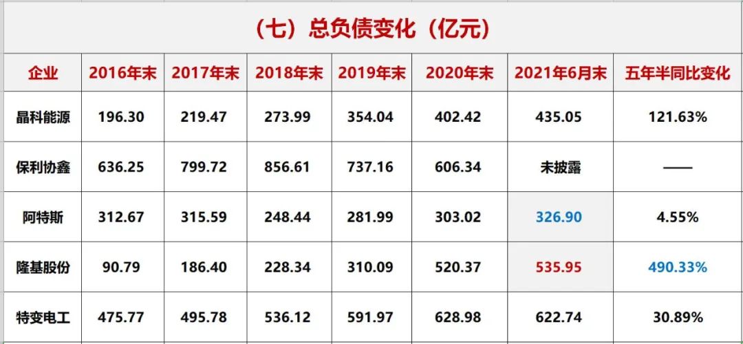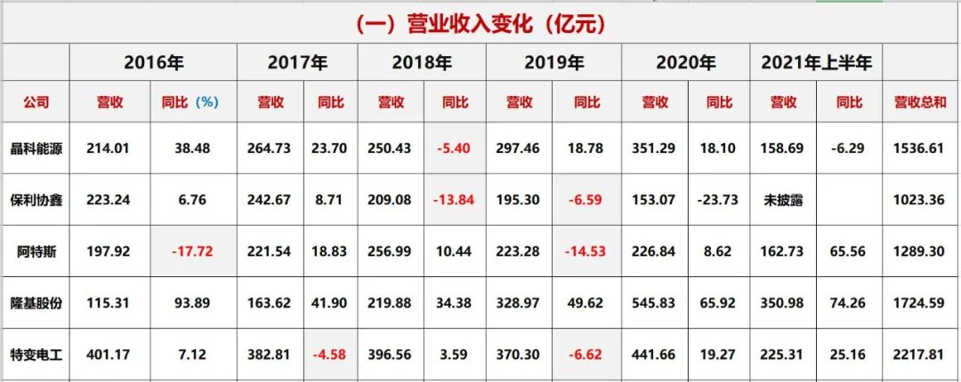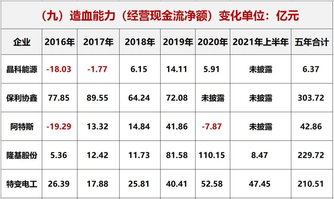 黑鹰光伏复盘了晶科能源、保利协鑫、阿特斯、隆基股份、特变电工、通威股份、中环股份、阳光电源、晶澳科技、天合光能等十大光伏巨头过往五年半的核心经营数据,数据维度包括营收、净利、毛利率、研发投入、资金实力、总负债与负债率等十大维度。各大企业近年的发展态势,从这些数据中可见端倪。