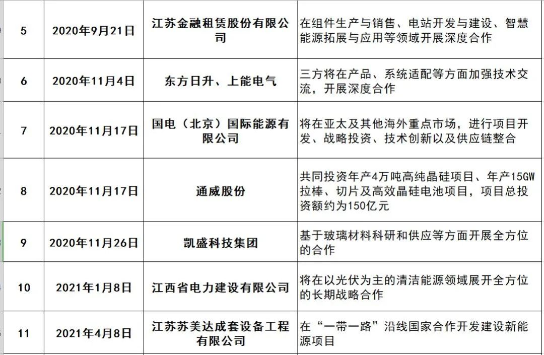 光伏巨头在战略与合作方面的“合纵连横”比比皆是,这也标志着光伏产业“新竞合时代”的开始。光伏巨头们的战略合作对象有金融企业,地方政府、大型央企国企、科研院所;有强强联手、有产业链互补、有跨界合作、有国资民资结合等等。类似的牵手协作也开始出现在“整县推进”的大潮中。