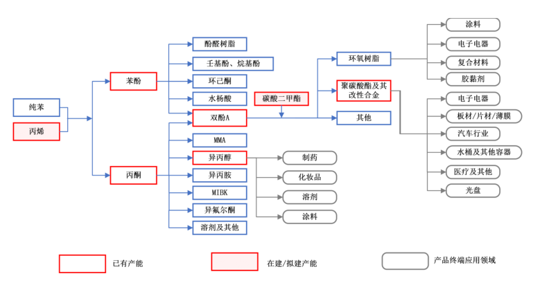 其中在苯酚领域,2017-2021年伴随下游行业的不断发展,国内苯酚消费量呈现逐年增长趋势。维远股份称,近年来受下游聚碳酸酯行业迅猛发展,以及下游液体环氧树脂在风电需求中的增量的影响,下游双酚A行业对苯酚消费量大幅增长,成为苯酚最大的消费领域。另外,下游酚醛树脂行业向集中化、规模化发展,年内多家厂家新上酚醛树脂装置,进一步刺激苯酚需求增加,2022年预期消费量将进一步提升。