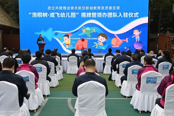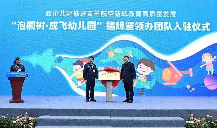 为落实青羊区政府和成飞公司政企共建青羊航空新城教育高质量发展目标,3月1日,泡桐树·成飞幼儿园揭牌暨领办团队入驻仪式正式举行。