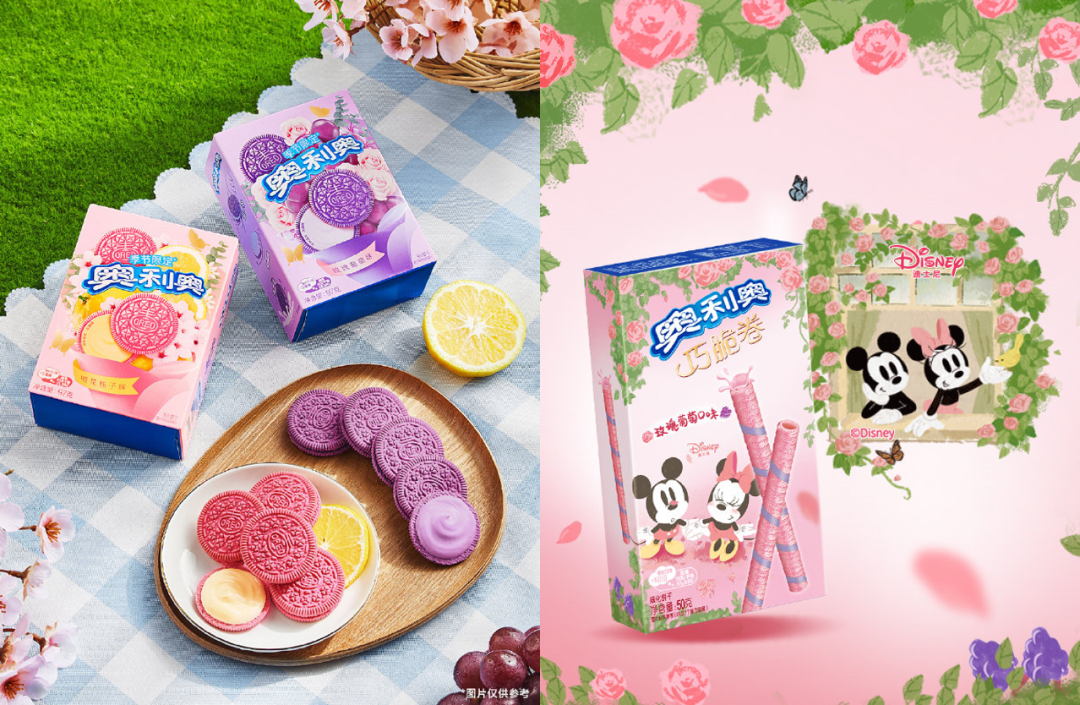 奥利奥紧跟其后,也于1月20日推出一年一度春日限定的全新花果口味,选用粉色、紫色、黄色等颜色,彰显春日活力气息,樱花柚子、玫瑰葡萄口味也更符合少女心人群的设定。