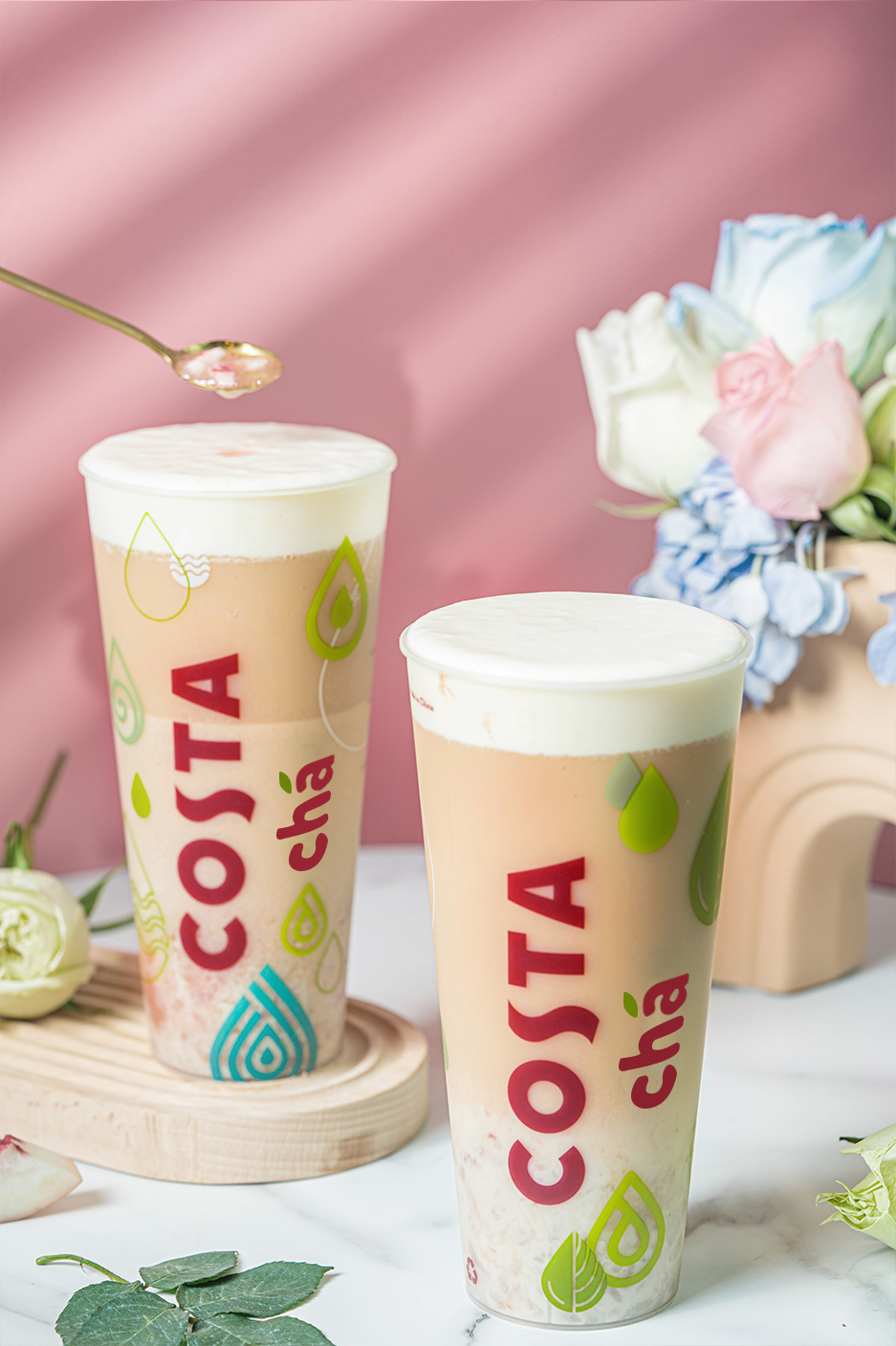 在今年推出的春日繁花限定系列中,COSTA主打将咖啡与花朵、茶饮与鲜果搭配融合在一起,推出的山茶花桃桃风味拿铁、洛神花陈皮风味拿铁、栀子白梨风味美式3款咖啡饮品从视觉和嗅觉上俘获人心,而陈皮等东方草本的融入也打开了COSTA创新的大门。