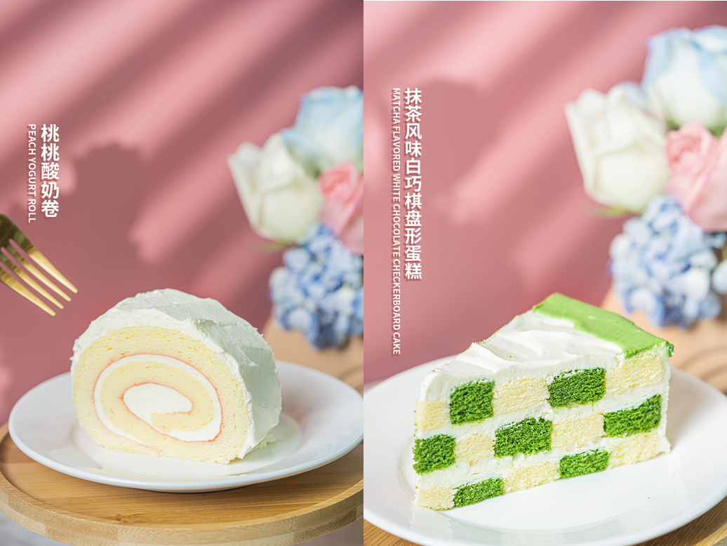 桃桃乌龙、荔枝多肉两款轻乳茶也加入了火爆的鸭屎香、燕麦奶等元素,顶层芝士风味的轻乳奶盖迎合大众口味需求的同时也更健康。此外还有桃桃酸奶卷、抹茶风味白巧棋盘形蛋糕,白、粉、绿的颜色搭配释放出满满春日气息,兼具颜值与口味,引的各路美食博主纷纷打卡。