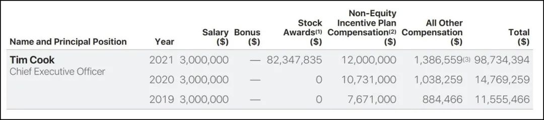 2021财年,库克获得了多少报酬?注:苹果公司的财年截止日为9月25日