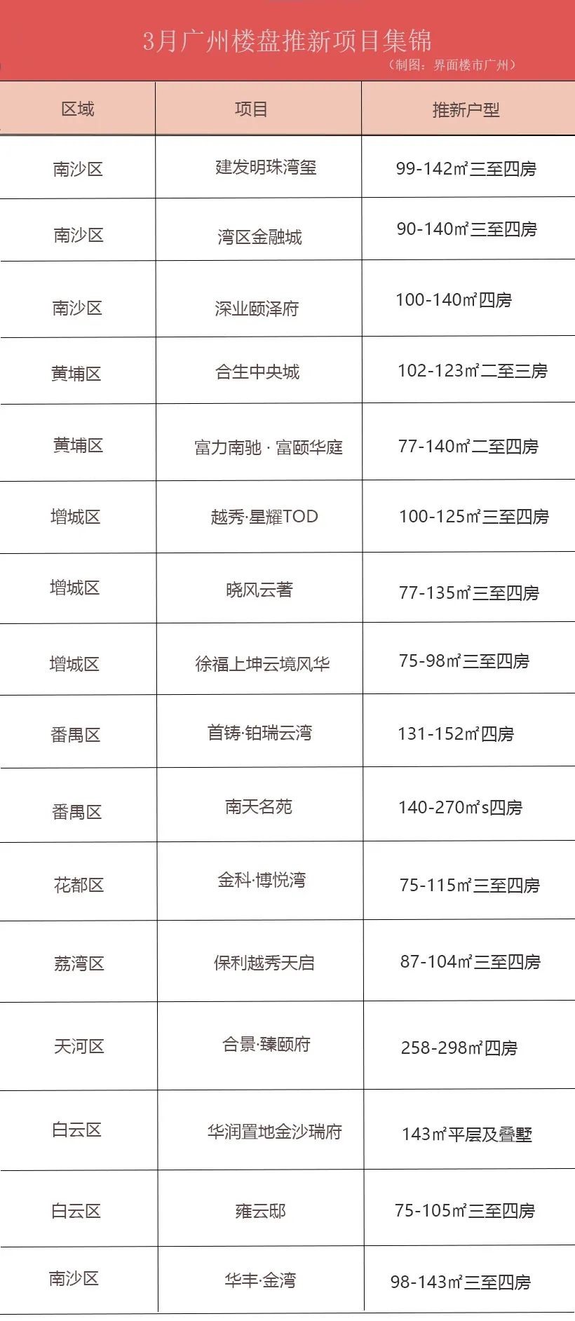 但受限于篇幅限制,接下来,界面楼市广州将分别针对部分热点房源项目进行梳理,发布不同的篇章,后续可持续留意。