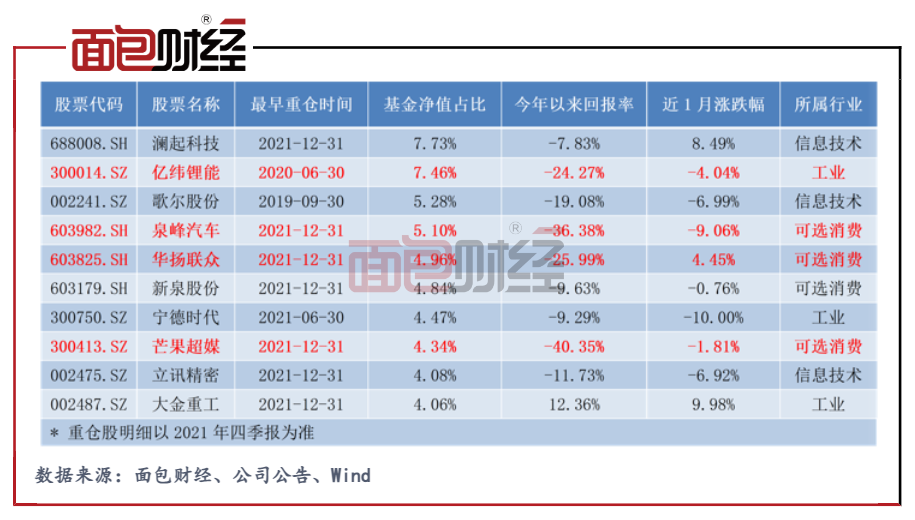 然后,最近三个月,该基金经历大幅回撤,在普通股型基金产品中跌幅居前。期间,南方产业智选曾变更基金名称并将投资范围从教育相关标的扩宽为全A股和港股通标的。基金的2021年末重仓股名单中,亿纬锂能、泉峰汽车、华扬联众、芒果超媒等2022年以来回撤已超过20%,其中芒果超媒回撤更是超过40%。