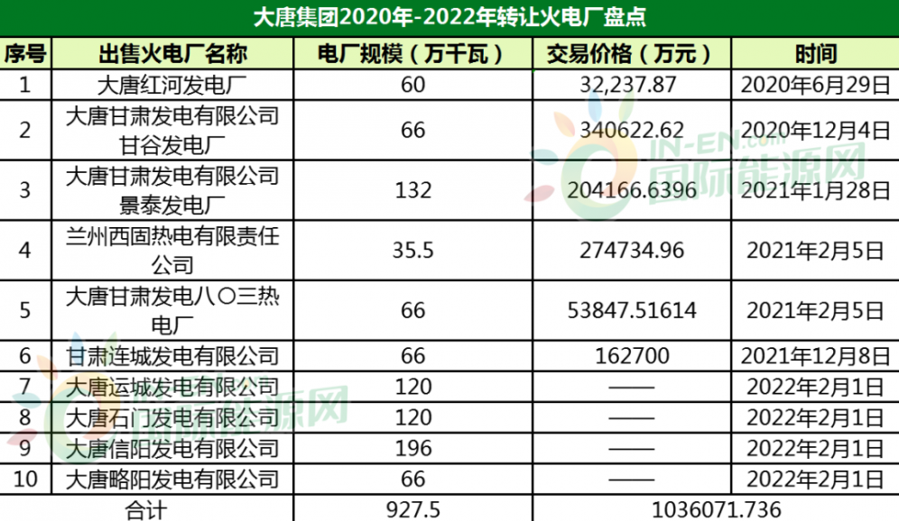 近日,国际能源网获悉,大唐集团将信阳、略阳、运城、石门四家火电厂管理权被移交给陕煤集团。这已经不是大唐集团第一次转让火电业务了。国际能源网不完全统计,仅最近一两年的时间,大唐至少已经转让了10家火电企业,累计装机将近1000万千瓦,涉及金额超100亿。