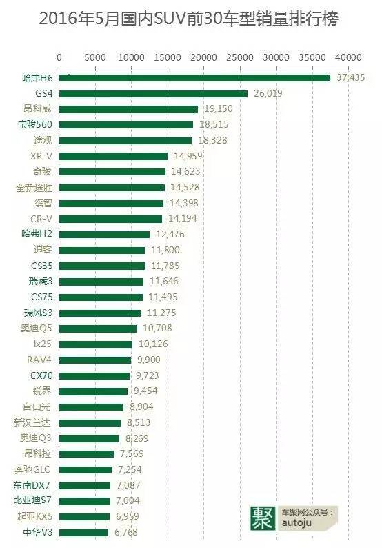 各位聚友先看一下前30名的SUV榜单,听一段车聚君的“数来宝”。