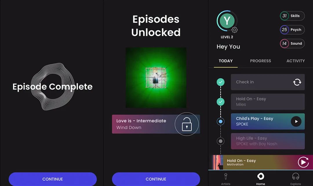 从产品定位、服务理念到概念设计,借助个性化推荐、积分+奖励的机制以及风格多样、长度合适的音频内容,Spoke让歌词、节拍和旋律都成为了音乐治疗的一部分,以帮助用户放松用户心情,逐步恢复理想的心理状态。