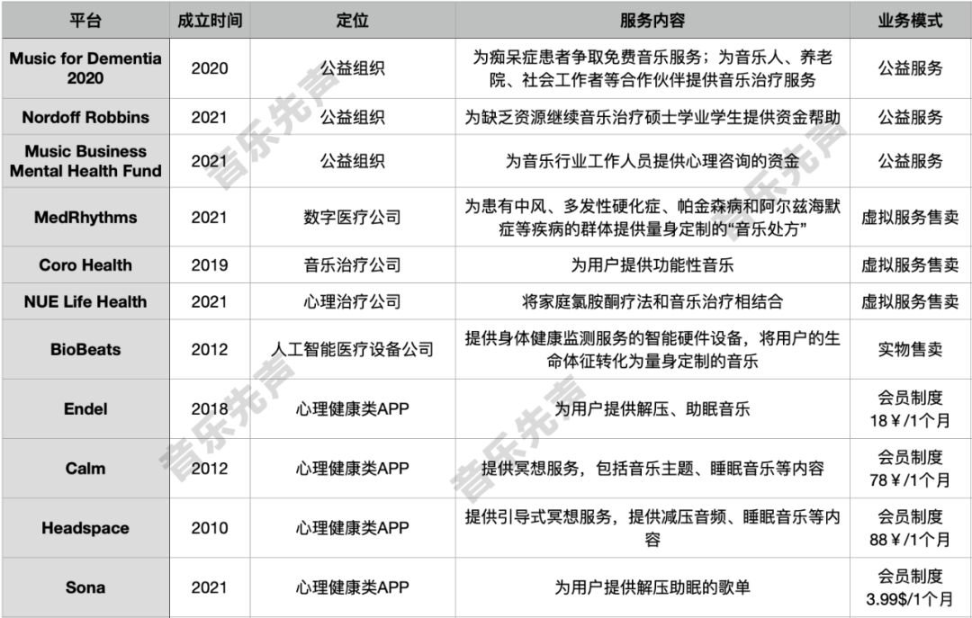 经过几十年的科学验证和实践发展,目前国内外已经有不少公司或组织都纷纷涉足到音乐治疗领域,将其应用于各类疾病或心理健康的疗愈恢复当中。