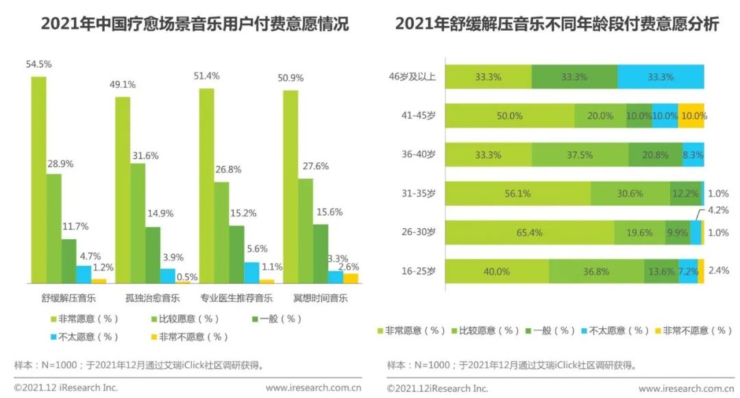 根据艾瑞咨询发布的《2021年中国场景音乐人群洞察白皮书》中有关“音乐治疗”的阐述,指的是按照应用音乐体验的方法,以音乐实用性为基础来治疗疾病及促进身心健康。其作用机制分为生理机制和心理机制,生理上通过适度物理能量引起人体组织细胞发生和谐共振现象;心理上,良性的音乐能提高大脑皮层的兴奋性,改善情绪,激发情感,振奋精神。