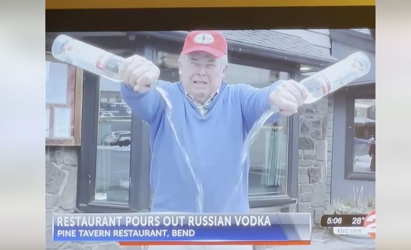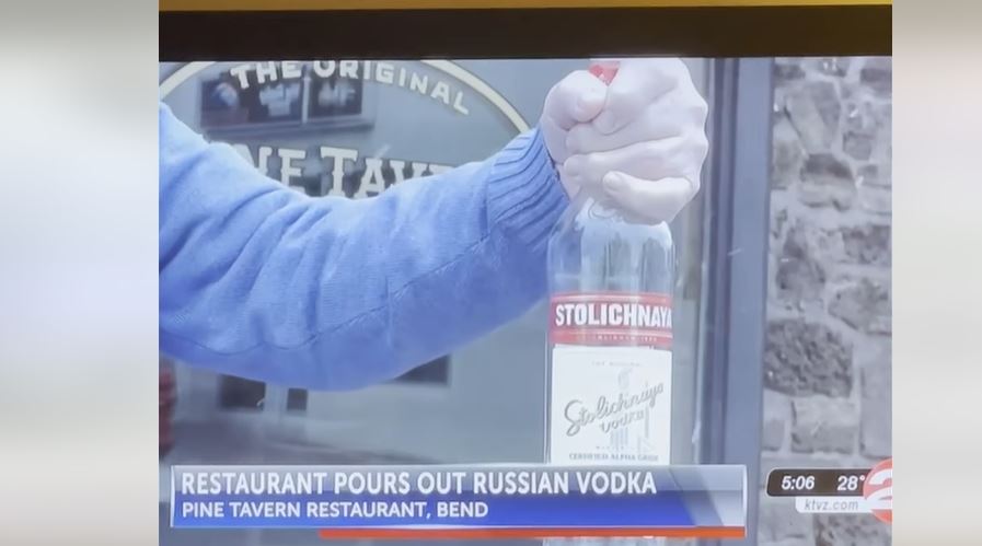 亚利桑那州一家餐馆的老板也在接受媒体采访时拿出名为Stolichnaya的伏特加,直接在镜头前把两瓶伏特加倒掉。