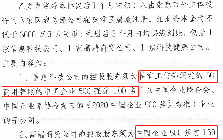 对于产业引进有非常高的要求,需引进3家区域总部公司在秦淮区属地注册,分别为:信息科技公司、高端商贸公司以及科技健康公司,并且对于公司的要求也非常严格,具体如下: