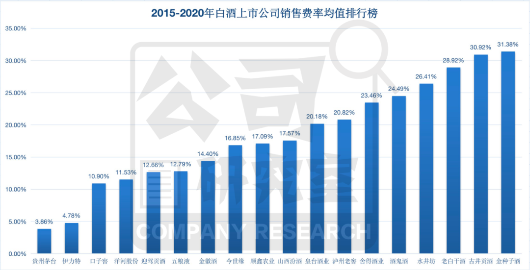 事实上,泸州老窖的营销费用率多年来就一直偏高。以2021年1H数据为例,A股18家白酒公司中,泸州老窖的销售费率为20.82%,远远高于贵州茅台与五粮液。