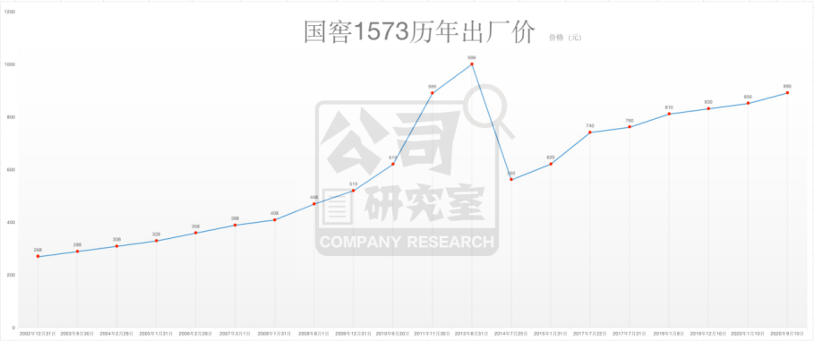 2012年时,贵州茅台的出厂价是每瓶819元,五粮液是659 元,次年涨到729元;而国窖1573出厂价2010年9月约为619元,2011年和2013年分别提价至889元和999元。也就是说,国窖1573成为当时高端白酒出厂价最高的品种。