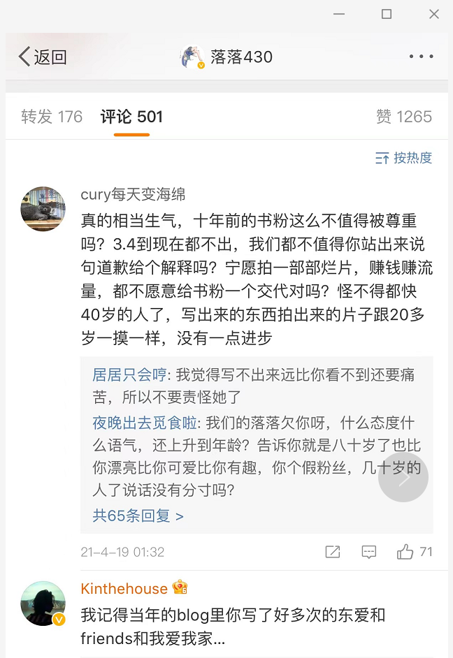 在影视圈浸润的“郭敬明们”作家身份开始脱落。2014年起,郭敬明再也没有出版过新书,韩寒的最新作品还停留在2014年的《告白与告别》,内容讲述的则是自己从作家转型为导演的心路历程。落落做导演后,《全宇宙至此剧终》后两部便没了音讯,去年还有书迷在其微博评论区催稿。