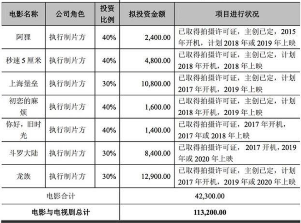 2019年上映的《上海堡垒》成为典型。这个由同名小说改编、顶流明星鹿晗主演的电影不但口碑崩塌,1.2亿元的票房也让投资方遭受巨大损失,《上海堡垒》投资方之一华视娱乐的招股书显示,华视娱乐在该片的投资占比为3成,拟投资额已经达到1.08亿元。按照这种方式计算,该片总投资成本将达到3.6亿元。拥有大量剧迷的《爱情公寓》、集结了大量明星的《封神传奇》也相继扑街。