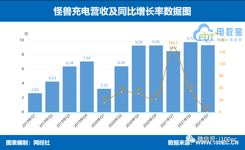 业绩表现上,另一家企业怪兽充电也“同病相怜”。据其发布的2021年三季报显示,第三季度怪兽充电营收为人民币9.300亿元(约合1.443亿美元),较2020年第三季度增长仅0.6%。