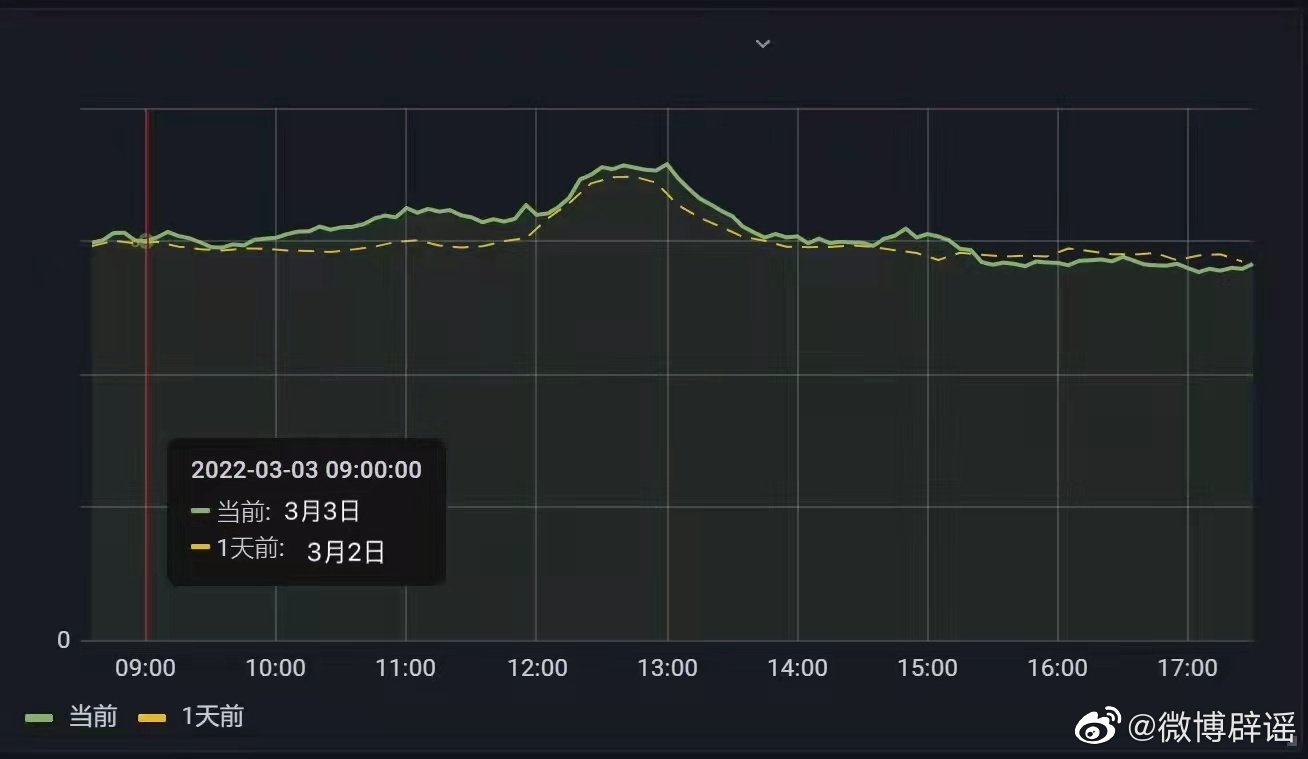 @微博辟谣 3月3日消息,据新闻报道,今日9时左右台湾发生大范围无预警停电事件,此后微博平台上出现了“台湾停电微博居然狂跌30%流量”的传闻。站方对此高度重视并进行核查,经查,今日8:30至17:30的9个小时区间内的访问流量数据,与昨日同一时间段的访问流量数据并无明显不同,甚至略有提升,根本不存在“狂跌30%流量”的情况,故此前传闻为不实信息。站方将对发布相关不实信息的账号依据规则予以处置。