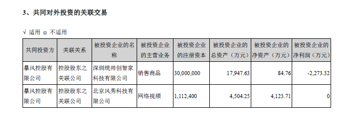 至于秀场的进展,在年报中并无相关财务数据。仅仅知道的是2015年风秀科技的净利润为零。而至于暴风秀场进展,界面新闻采访了暴风集团相关人士,其也表示暂时“没有更多的内容可以分享”。