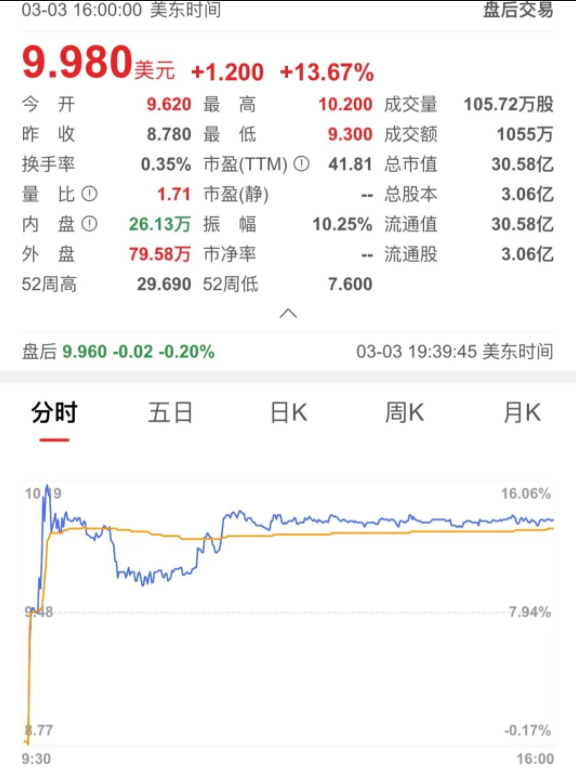 北京时间3月3日晚上,名创优品发布新一季财报后3小时,美股开市,名创优品大涨12.76%。截至收盘,涨幅为13.67%。
