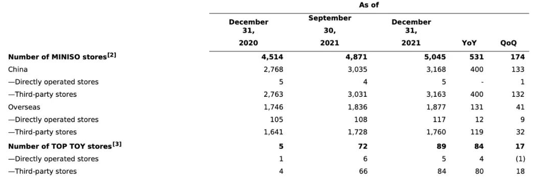 名创优品2021年年底的门店数据来源,图源 名创优品2022财年第二季度财报