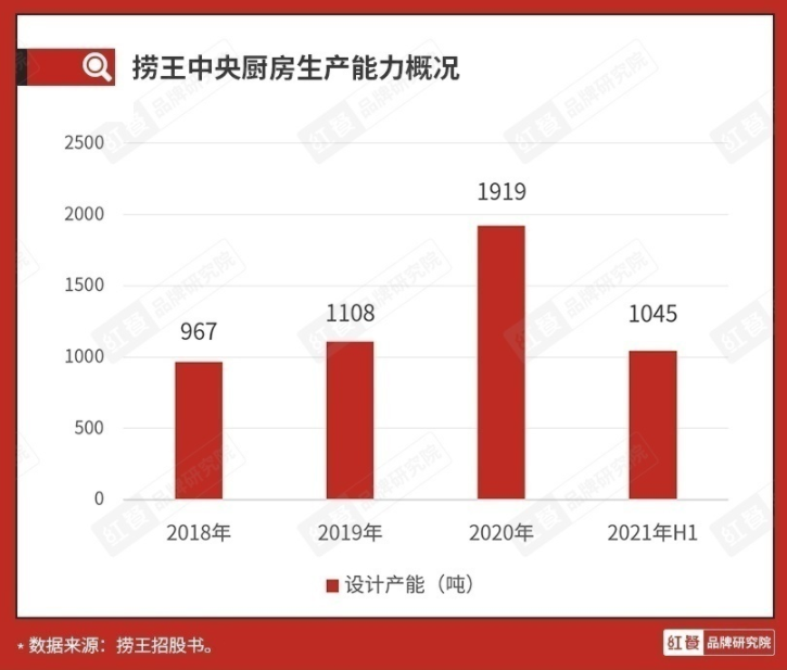 同时,捞王还在苏州市建有中央厨房,负责汤品的开发和生产。招股书显示,捞王中央厨房已实现半自动智能化生产,且在生产技术得到了优化后,其设计产能两年内翻了一倍,2020年的设计产能近2000吨,2021年的产能可满足超300家门店的汤品需求。