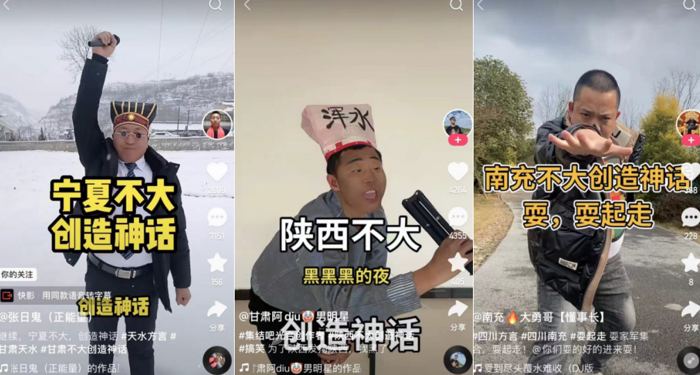 这句话来自短视频博主@甘肃○炎阳创作的一系列“甘肃战歌”,那是一组充斥着各种标准意义上“土味元素”的短视频——喊麦、不明所以的舞蹈动作、略微失真的话筒音效、两元店风格的伴奏beat、有辨识度的地方口音——强烈的视觉冲击不断夯实着你对“西北农村”的刻板印象,文艺青年会说cult,Z世代们能惊呼鬼畜。