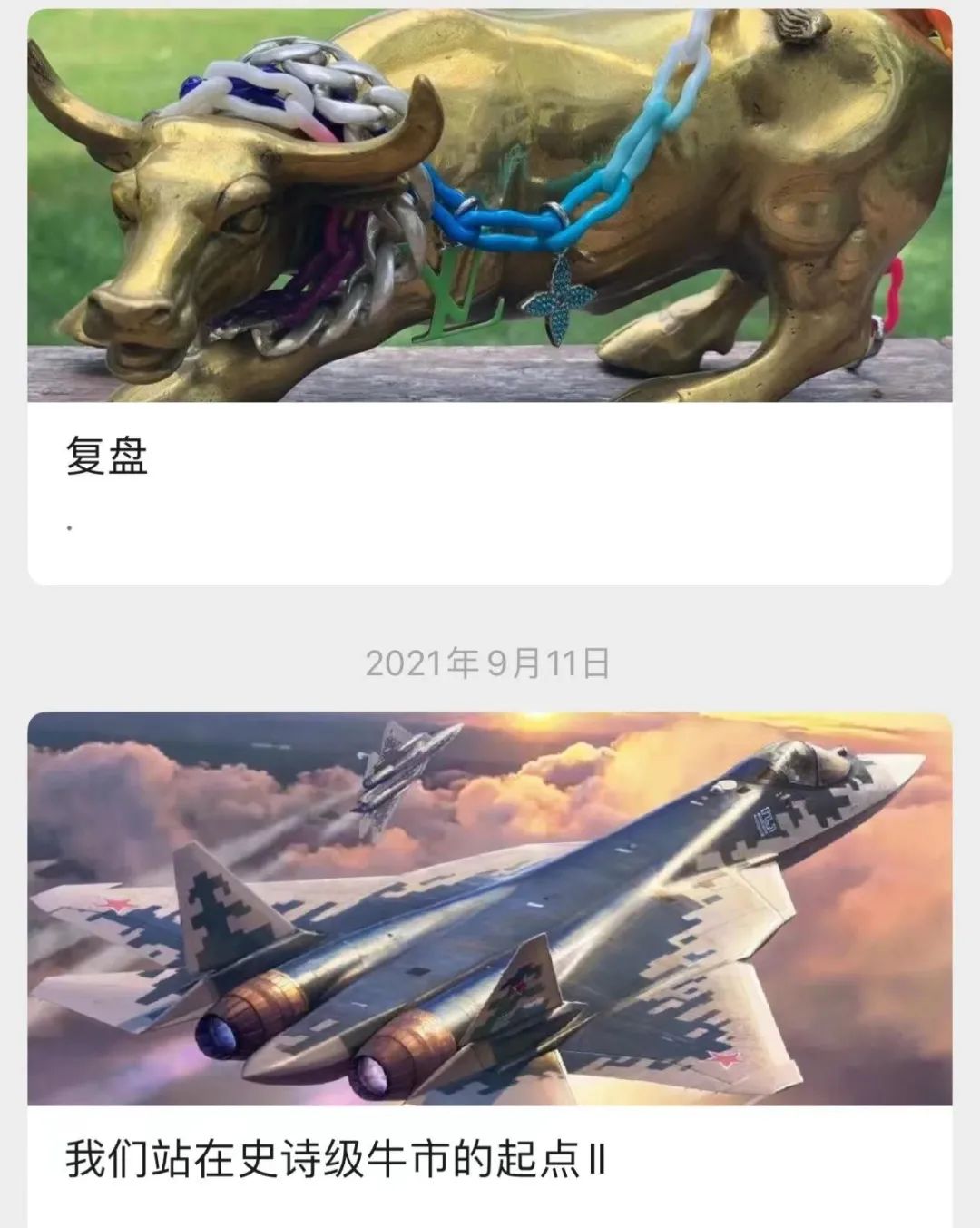 直到2020年9月,他一直关注的搞地产的博主,突然改做股票了,喊出了惊人的口号——万点龙市,是男人就重仓365天。同时每天更新一篇文章,晒出自己的持仓和盈亏,2000w的持仓一天经常几百万盈利。