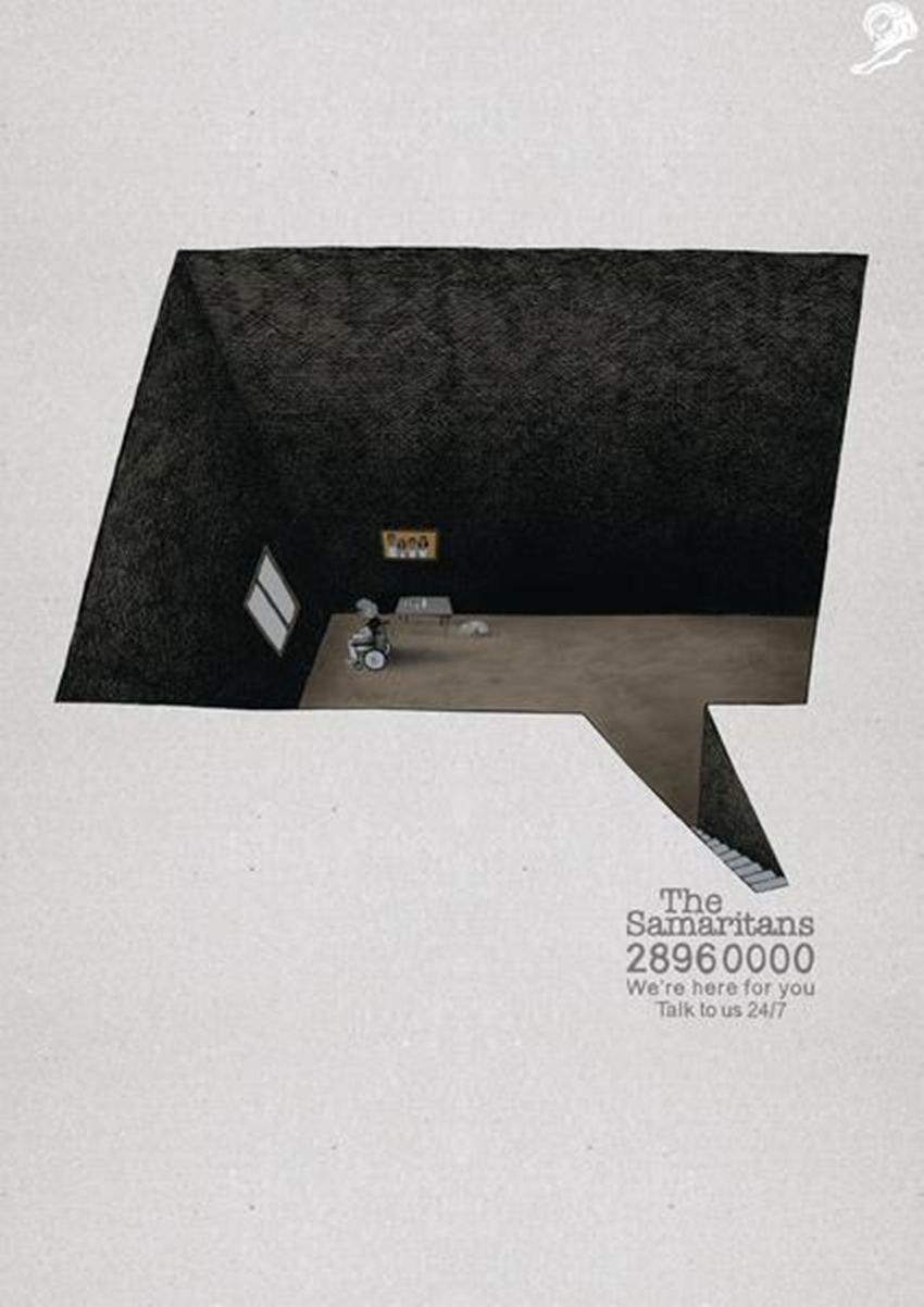看看高耸写字楼的格子间,像不像是原始人的群居洞穴?扬罗必凯上海制作的一系列反应都市人压力的平面海报获得了该类银狮奖。你会发现,校园暴力、变性倾向、学习压力等都会让生活变得灰暗,如同生活在洞穴中一般,难见天日。它同时也获得了设计类铜狮奖和健康类铜狮奖。