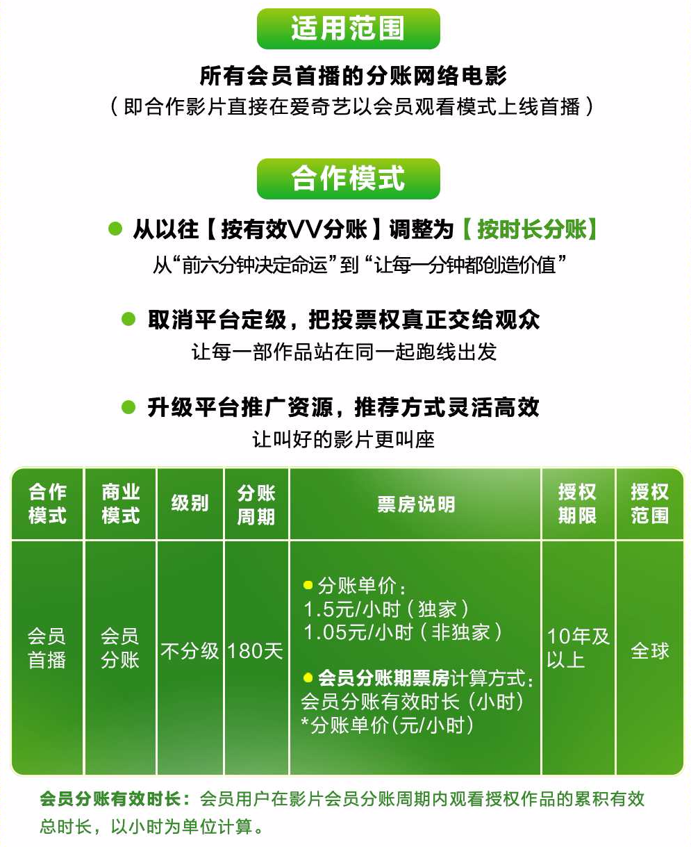 网络电影已经诞生8年,这期间视频平台对分账规则进行过多次升级和完善,但大多只是“微调”,而此次可算是“革新”。相比过去执行了近8年的旧分账规则,此次爱奇艺线上电影发行新规,主要有以下几大变化: