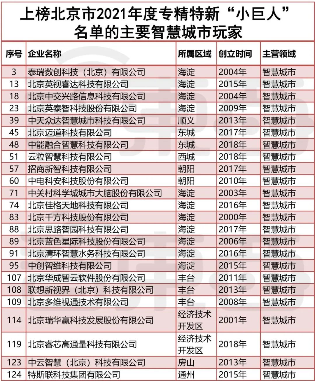 通过梳理分析,我们发现在2021年度北京专精特新“小巨人”企业中,涌现出了多家人工智能、大数据、云计算、智慧城市、智能工业等领域的智能产业玩家。