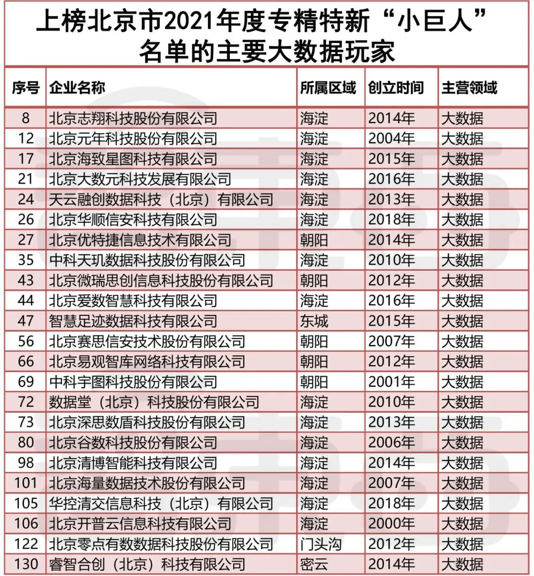 这些入选专精特新“小巨人”的大数据企业,不乏一些是大数据领域的开创者。