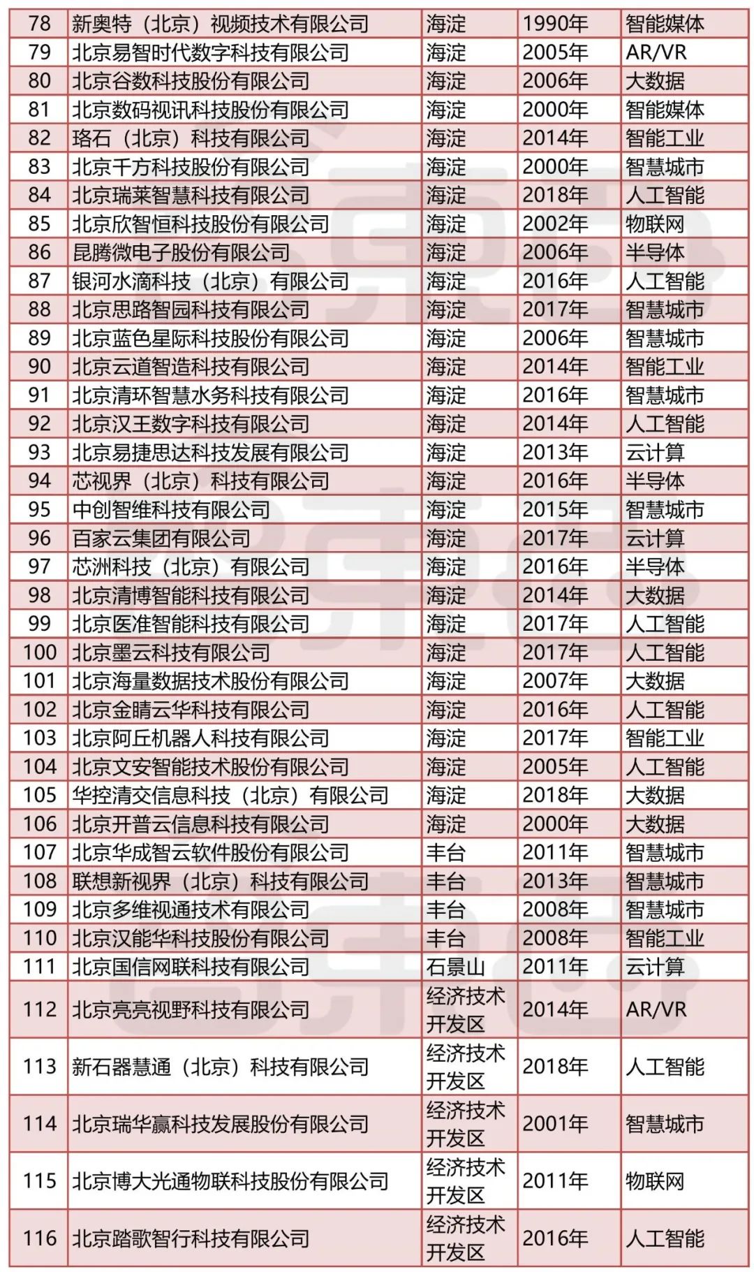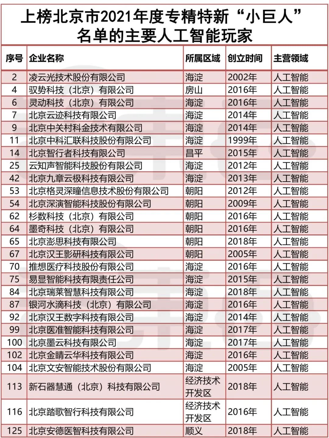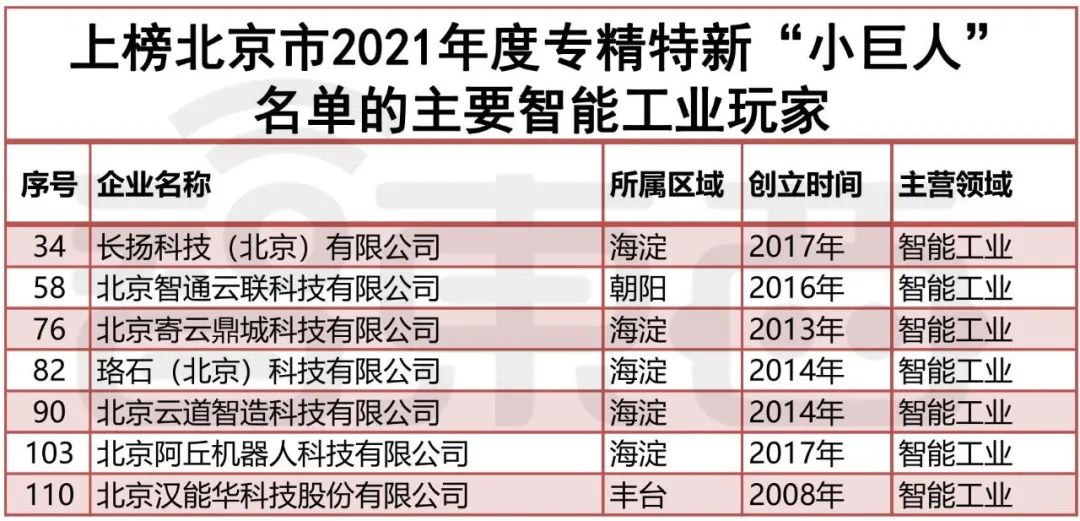 ▲北京专精特新“小巨人”企业中的智能产业玩家(排名不分先后)