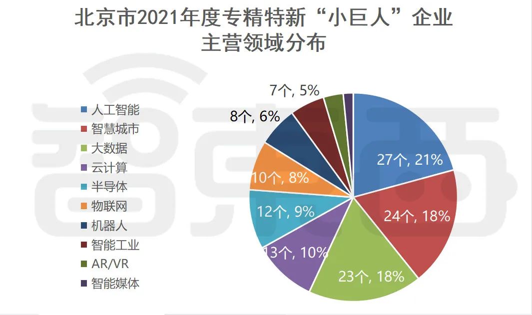 仅次于人工智能,在北京市专精特新“小巨人”中分布最多的是智慧城市企业,达到24个,占18%。