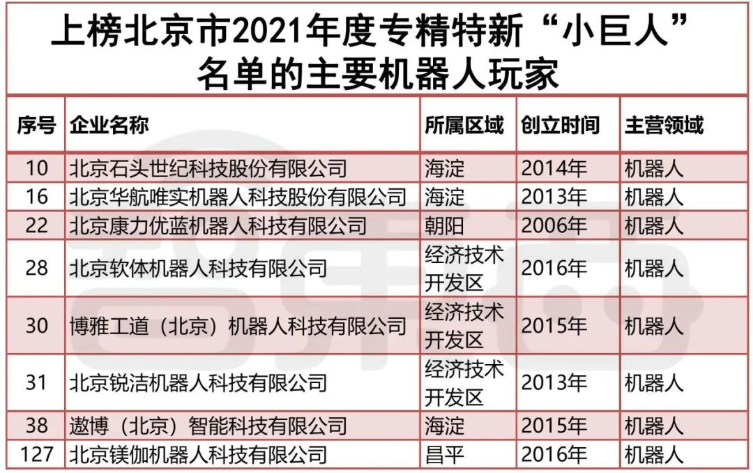 再来看看机器人领域,一共有8家企业登上2021年度北京专精特新“小巨人”名单。