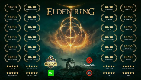 这是知名游戏制作人宫崎英高继《只狼:影逝二度》后,蛰伏三年推出的魂系大作,一经上线便迅速登上热搜并打破销量纪录,在线人数峰值达到了近90万人。同时参与评价的45家媒体均为《艾尔登法环》给出好评,其中多家媒体打出满分。