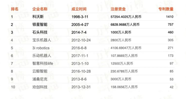 从万榜披露的,截止到2021年6月初的中国扫地机器人企业专利数量排名,可见中国企业的技术水平。