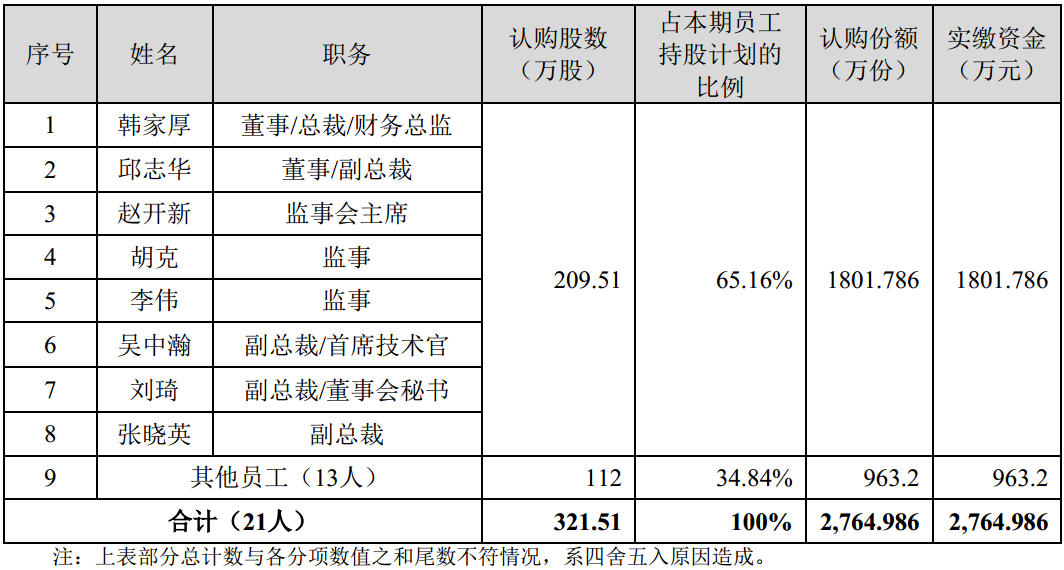 调整后,参加本期员工持股计划的公司董事、监事和高级管理人员共计8人(此前是7人),认购总份额为209.51万股(此前是292.51万股),占员工持股计划总份额的比例为65.16%(此前是90.98%);其他员工认购的总份额预计不超过112万股(此前是29万股),占员工持股计划总份额的比例预计为34.84%(此前是9.02%)。