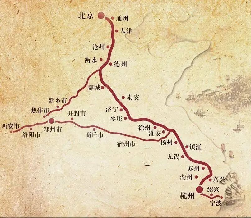 隋唐大运河是以洛阳为中心,其永济渠、通济渠大部分河段至近代已经无水;元代在隋唐运河基础上,于京杭之间取近路开凿了济州河、会通河、通惠河,是为京杭大运河;浙东运河又名杭甬运河,在浙江境内,始建于春秋,贯通于西晋,西起杭州,经绍兴,东至宁波甬江入海口
