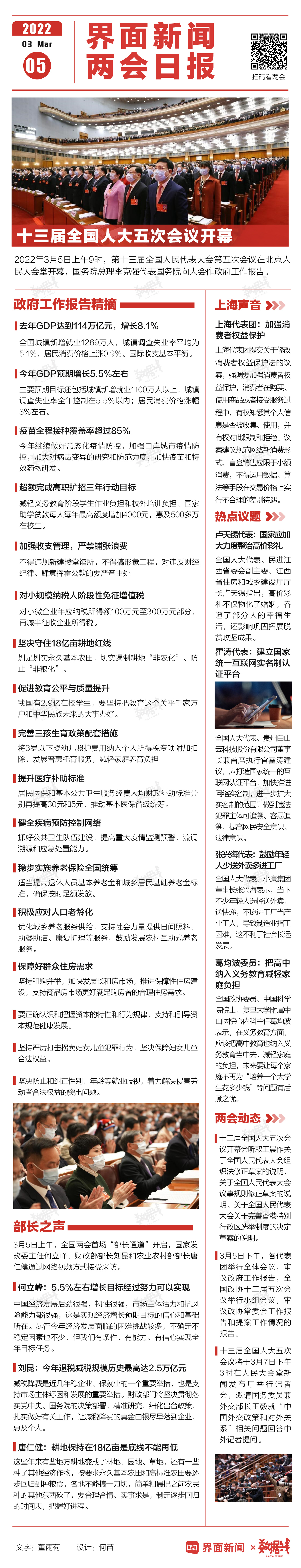 十三届全国人大五次会议开幕|界面新闻两会日报