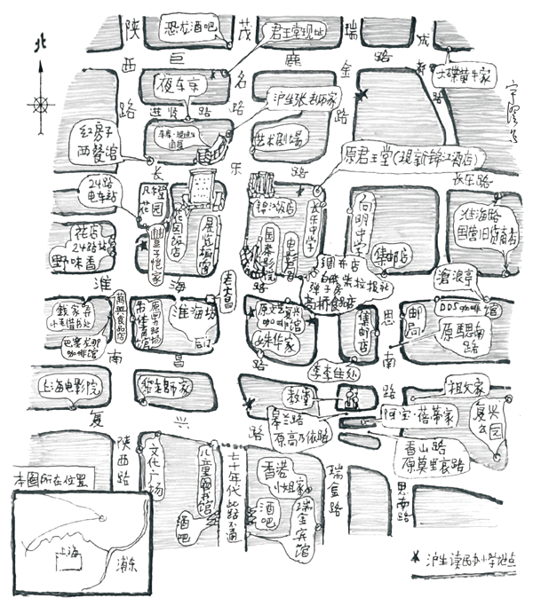 他新近画了1966年之前父母在上海认识、结婚、生活的地图,母亲在复旦大学读书,父母在霞飞路成家。“通常认为城市人在上海是很孤独的,但仔细研究一个人在城市的历史,会发现他搬了很多家,如果加上亲戚、朋友,会发现一个人与城市地点有着千丝万缕的联系。在上海生活,就一定会与普通建筑联系在一起。如果建筑消失了,历史就没有了。”