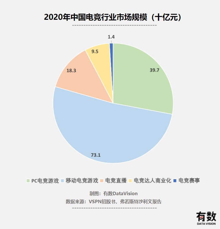 根据弗若斯特沙利文的报告来看,2020年电竞行业整个赛道规模为1372亿,大头还是掌握在版权方手中比如腾讯,其中PC与移动电竞游戏运营就占据整个赛道的82.22%。说白了卖皮肤才是真正的大头,而赛事承办在整个电竞产业链中占比仅1%,还受到版权方版权钳制,产值也才14亿。